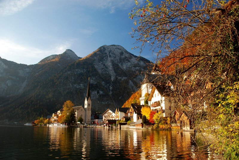 Hallstatt is a vertical village, and in autumn, that verticality works in your favor. As the deciduous trees on the Dachstein mountains turn, they create stripes of color that lead the eye directly to the lake’s edge.