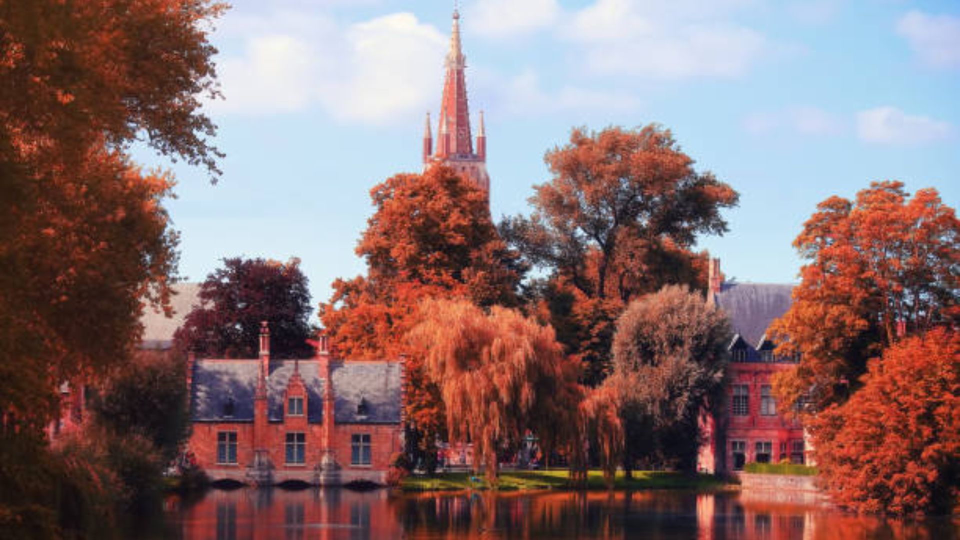 Bruges is essentially a medieval open-air museum, and autumn adds a layer of coziness that fits its architecture perfectly. The ivy covering the historic Godshuis almshouses turns a deep, blood-red, reflecting in the green water of the canals.